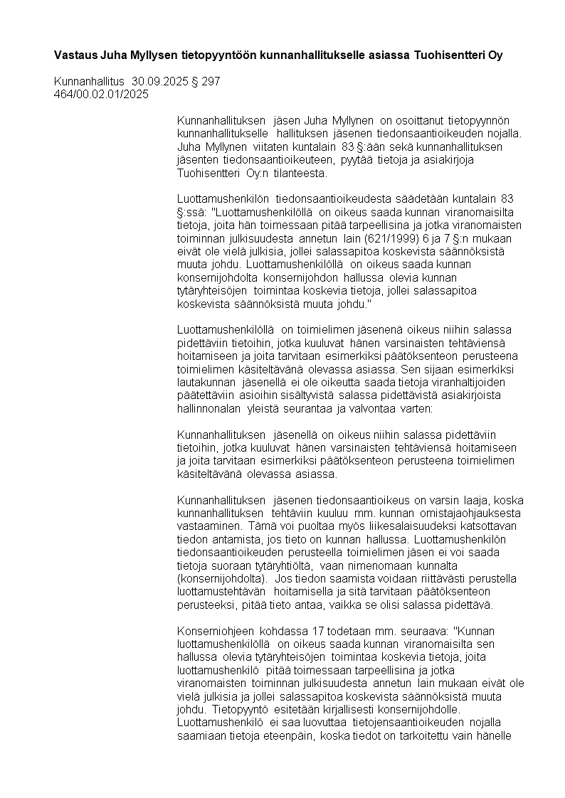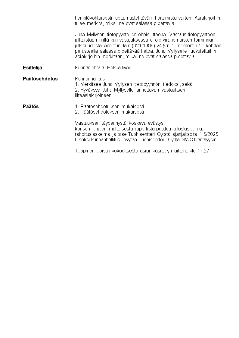 | 10 | Vastaus Tietopyyntöön Juha Myllynen Julkinen | |