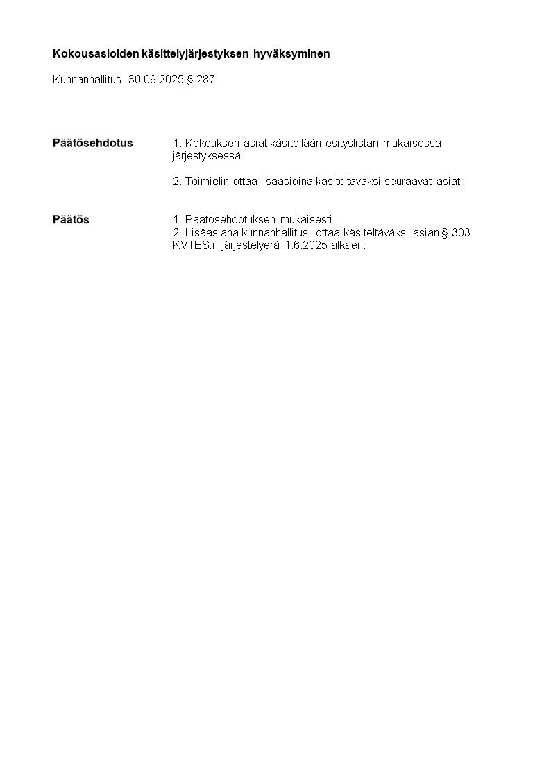 Pöytäkirja 30.09.2025/Pykälä 287
