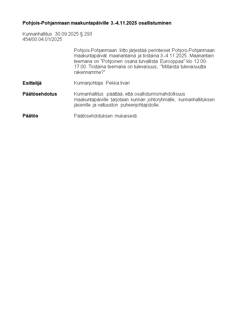Pöytäkirja 30.09.2025/Pykälä 293