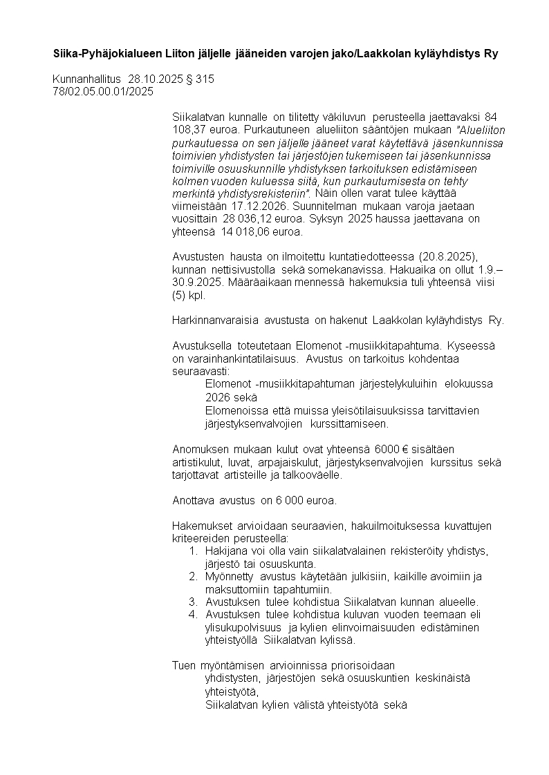 Pöytäkirja 28.10.2025/Pykälä 315