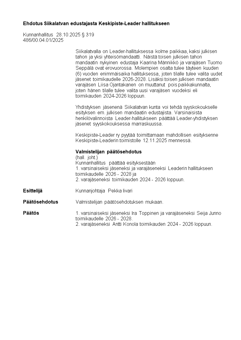 Pöytäkirja 28.10.2025/Pykälä 319