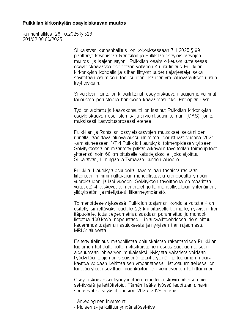 Pöytäkirja 28.10.2025/Pykälä 328
