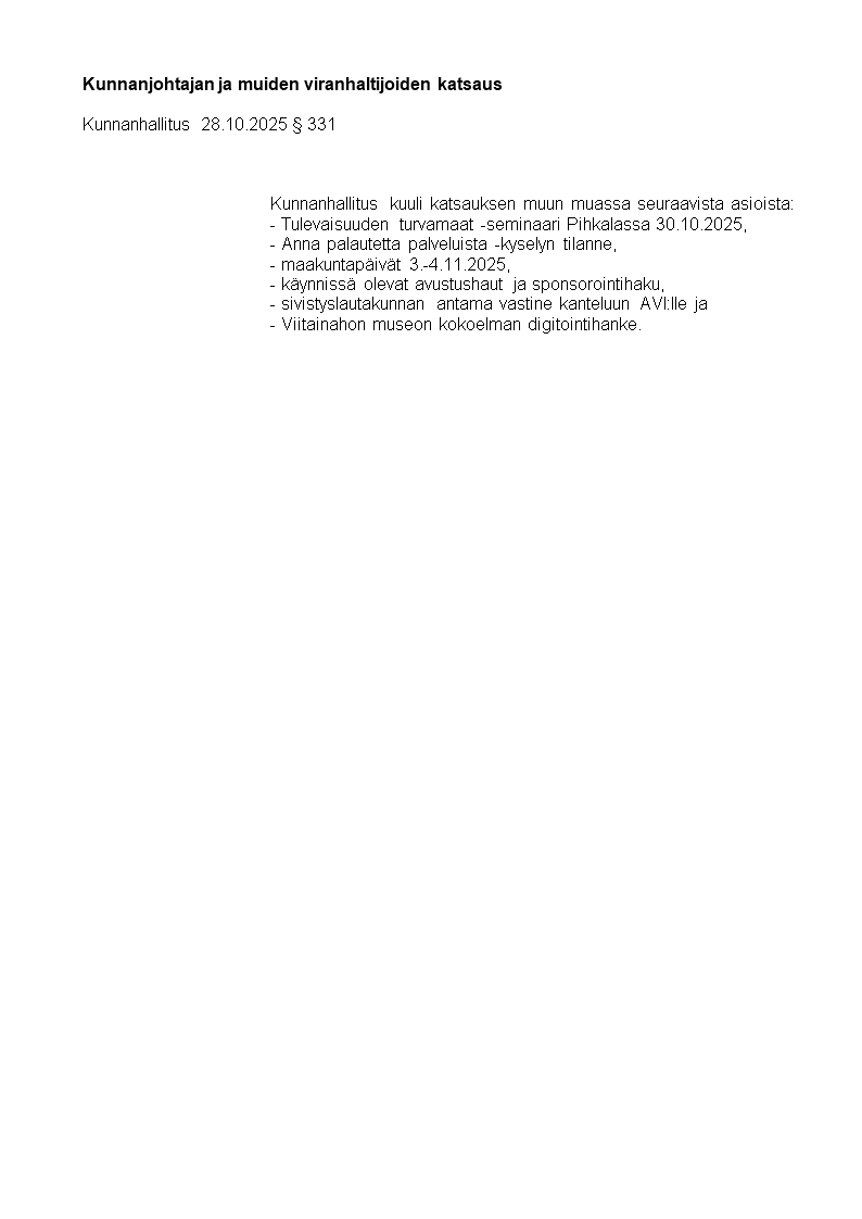 Pöytäkirja 28.10.2025/Pykälä 331
