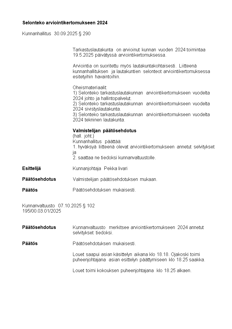Pöytäkirja 07.10.2025/Pykälä 102