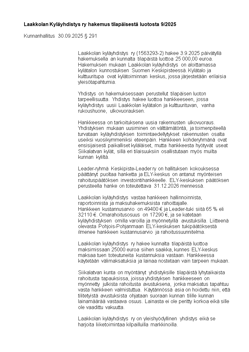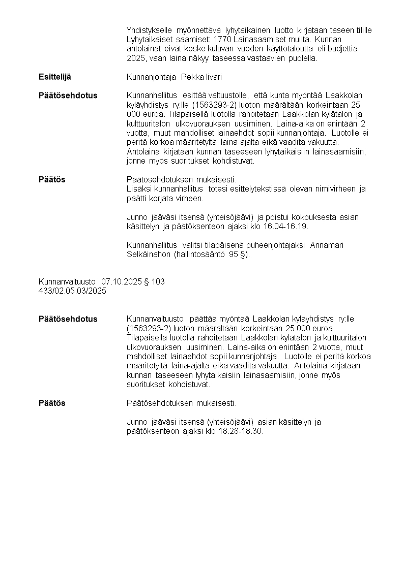 Pöytäkirja 07.10.2025/Pykälä 103