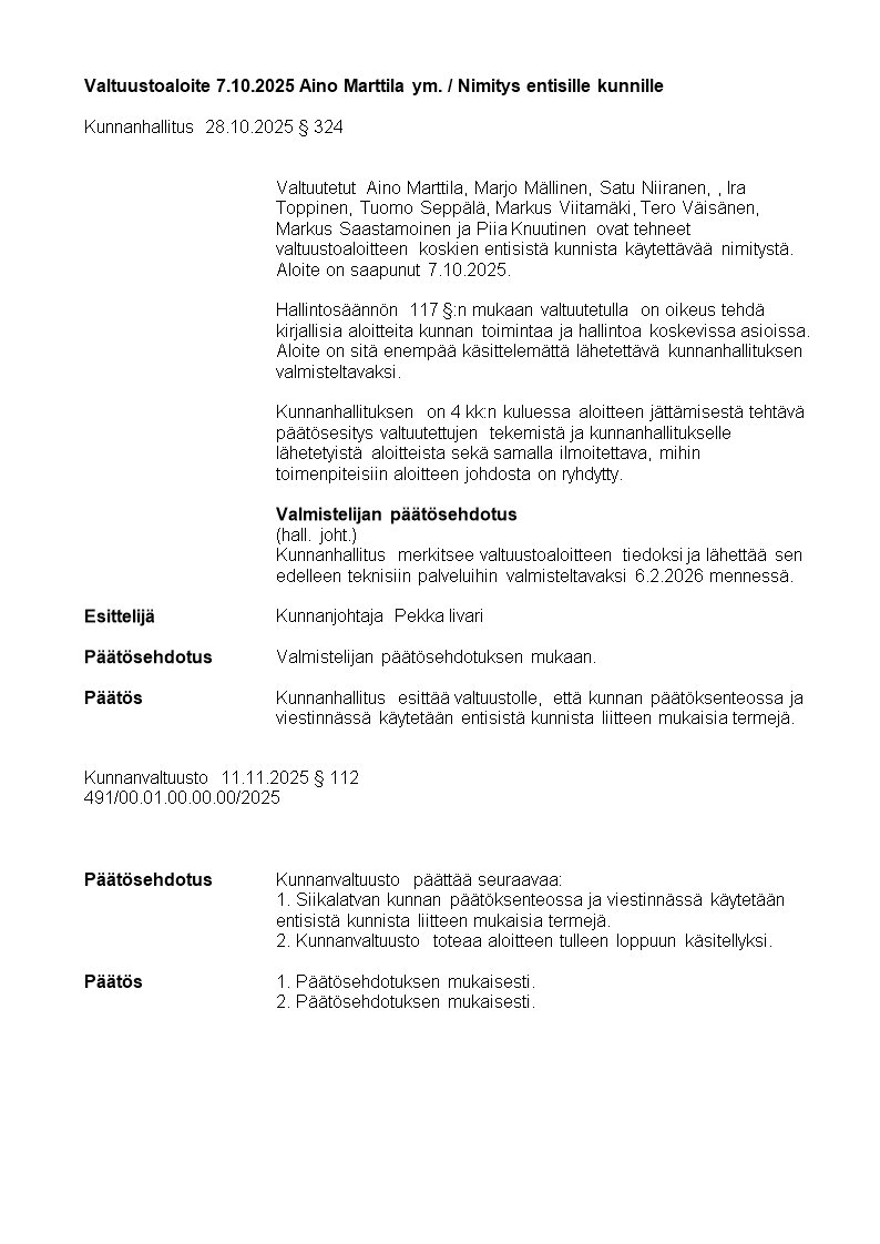 Pöytäkirja 11.11.2025/Pykälä 112