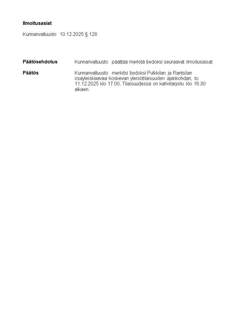 Pöytäkirja 10.12.2025/Pykälä 128
