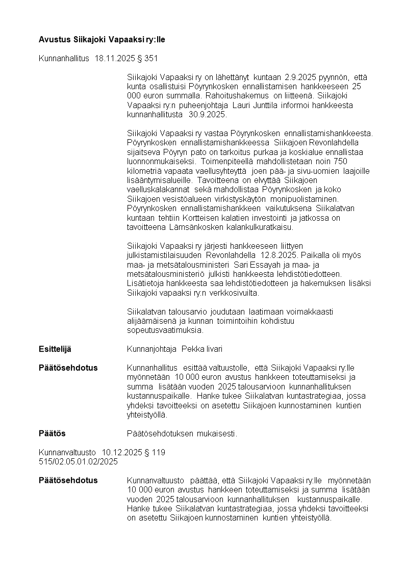 Dynasty tietopalvelu Haku RSS Siikalatvan kunta