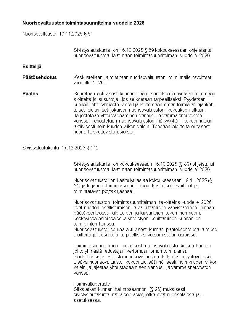 Pöytäkirja 20.01.2026/Pykälä 13
