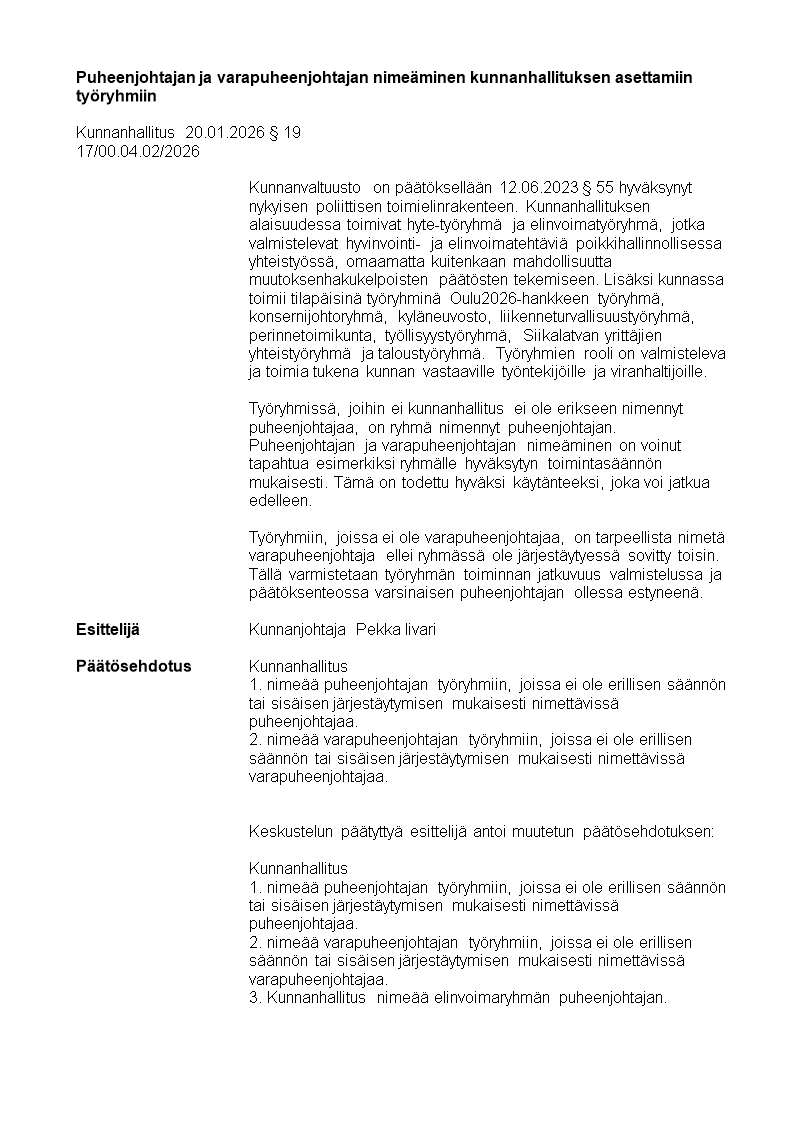 Pöytäkirja 20.01.2026/Pykälä 19