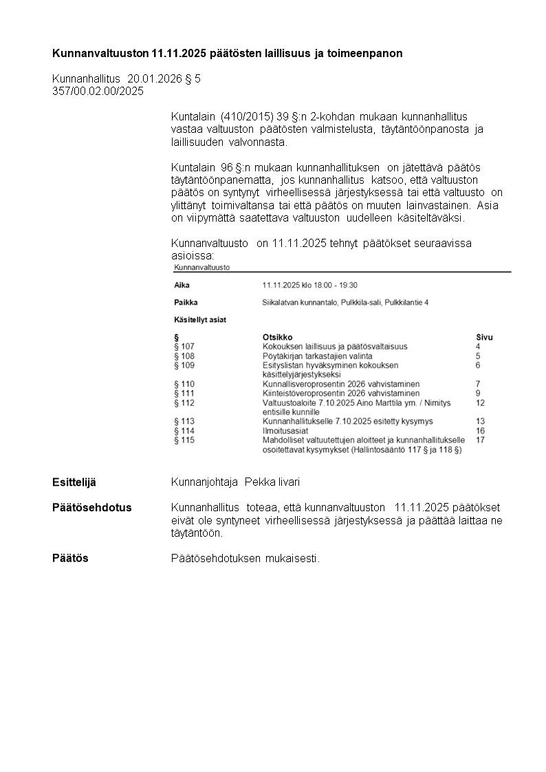 Pöytäkirja 20.01.2026/Pykälä 5
