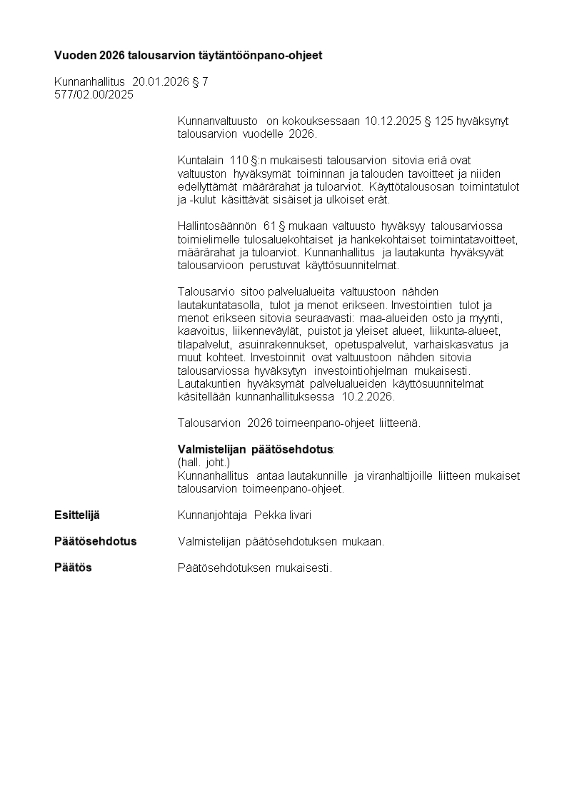 Pöytäkirja 20.01.2026/Pykälä 7