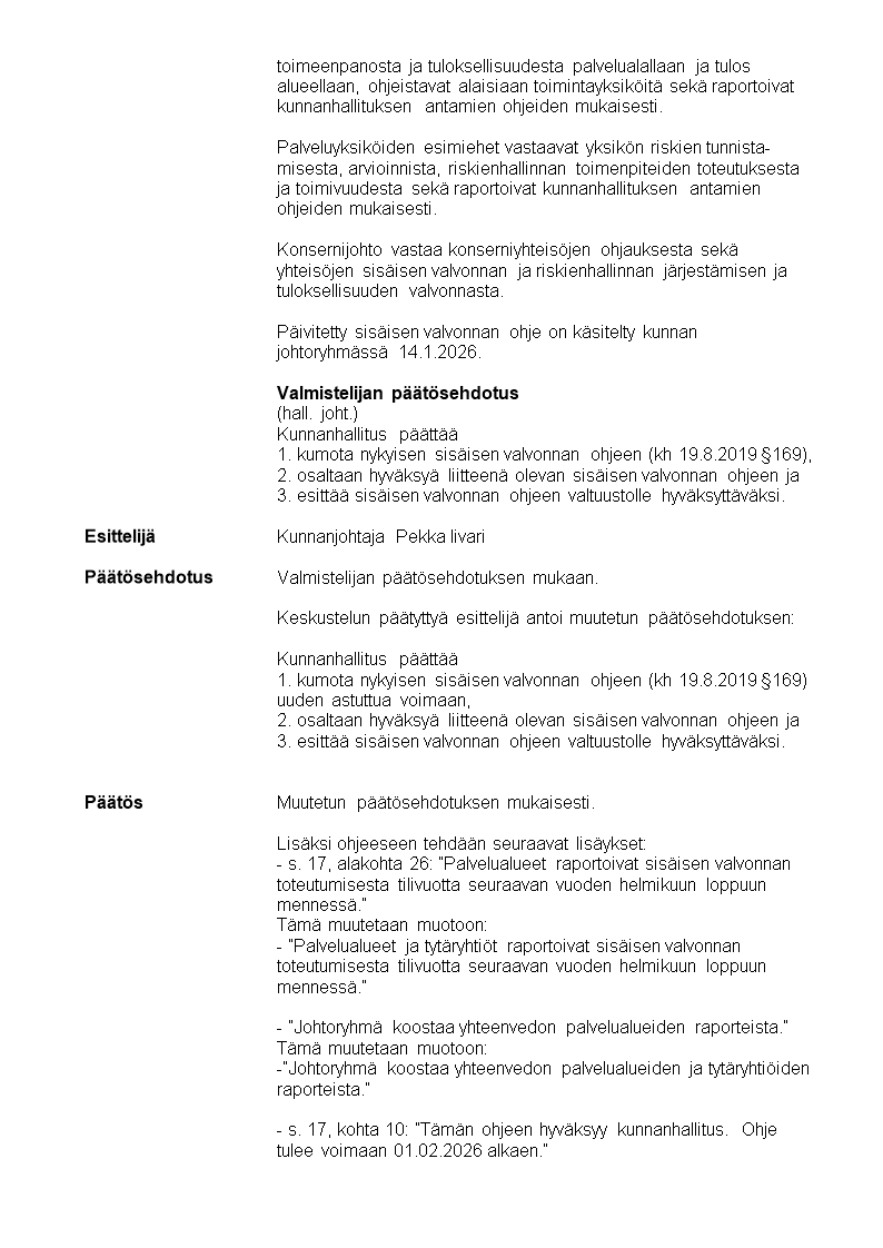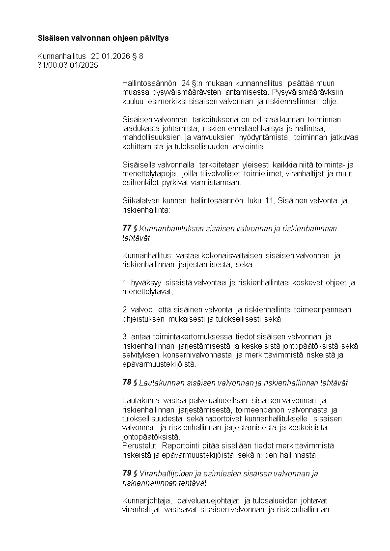 Pöytäkirja 20.01.2026/Pykälä 8