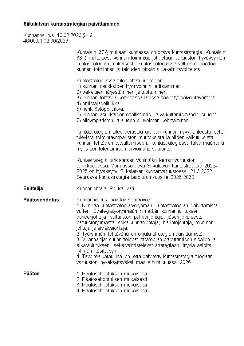 Pöytäkirja 10.02.2026/Pykälä 49