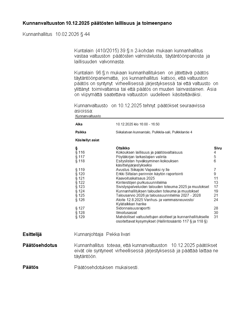 Pöytäkirja 10.02.2026/Pykälä 44