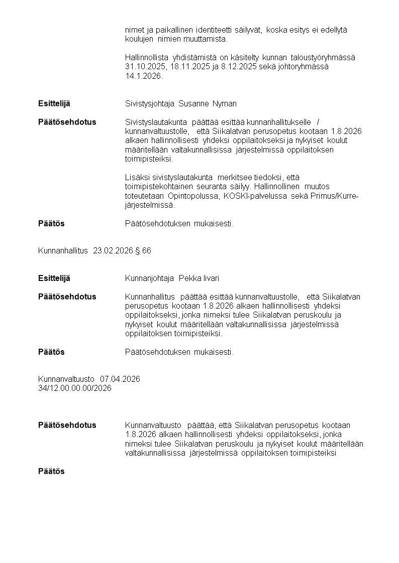 Dynasty tietopalvelu Haku RSS Siikalatvan kunta