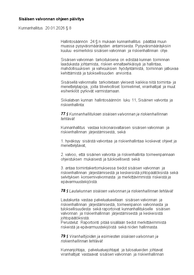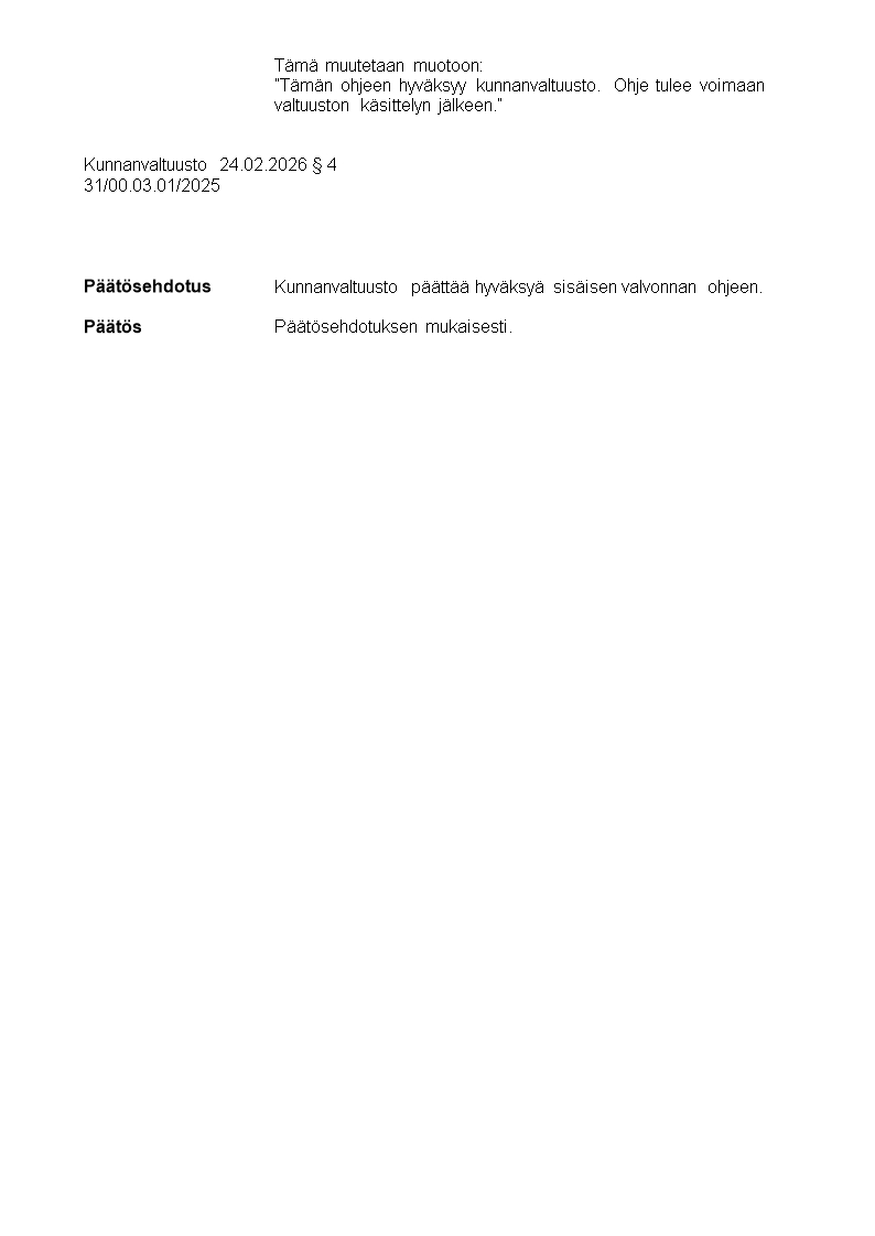 1 Sisäisen valvonnan ohje 2026 kunnanvaltuusto