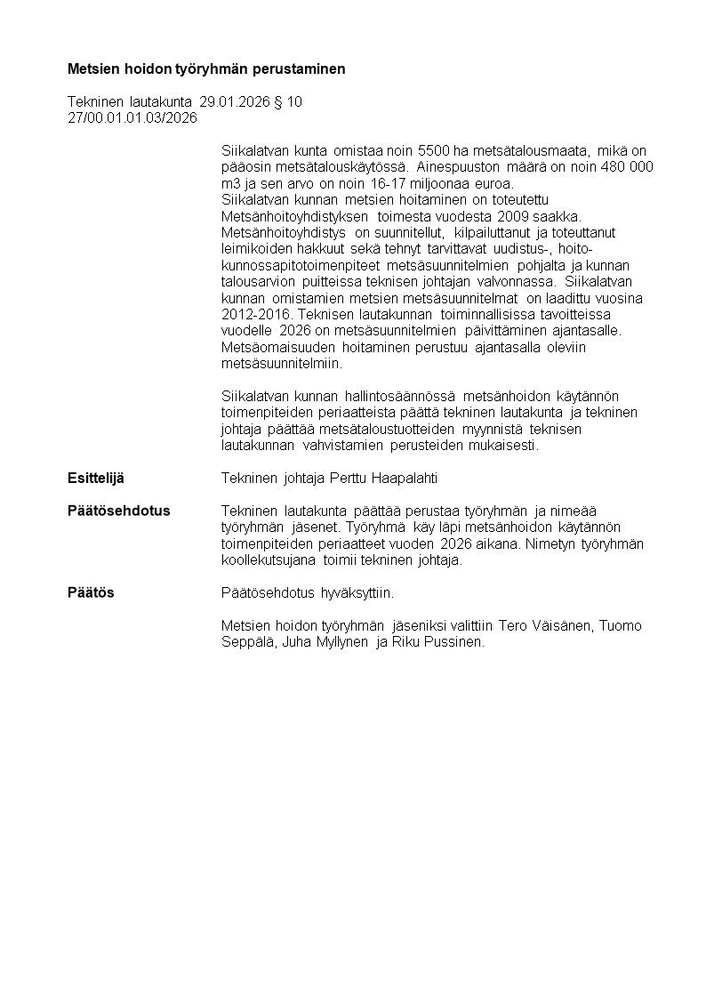 Pöytäkirja 29.01.2026/Pykälä 10