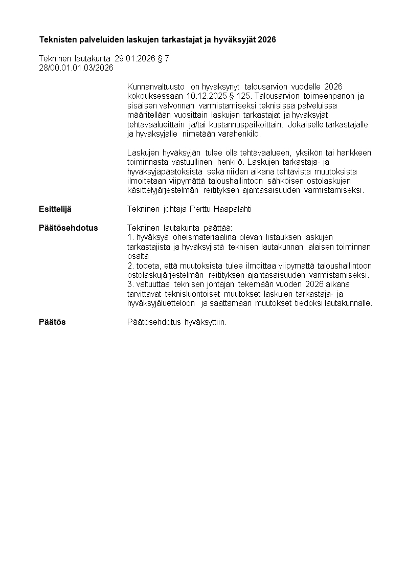 Pöytäkirja 29.01.2026/Pykälä 7