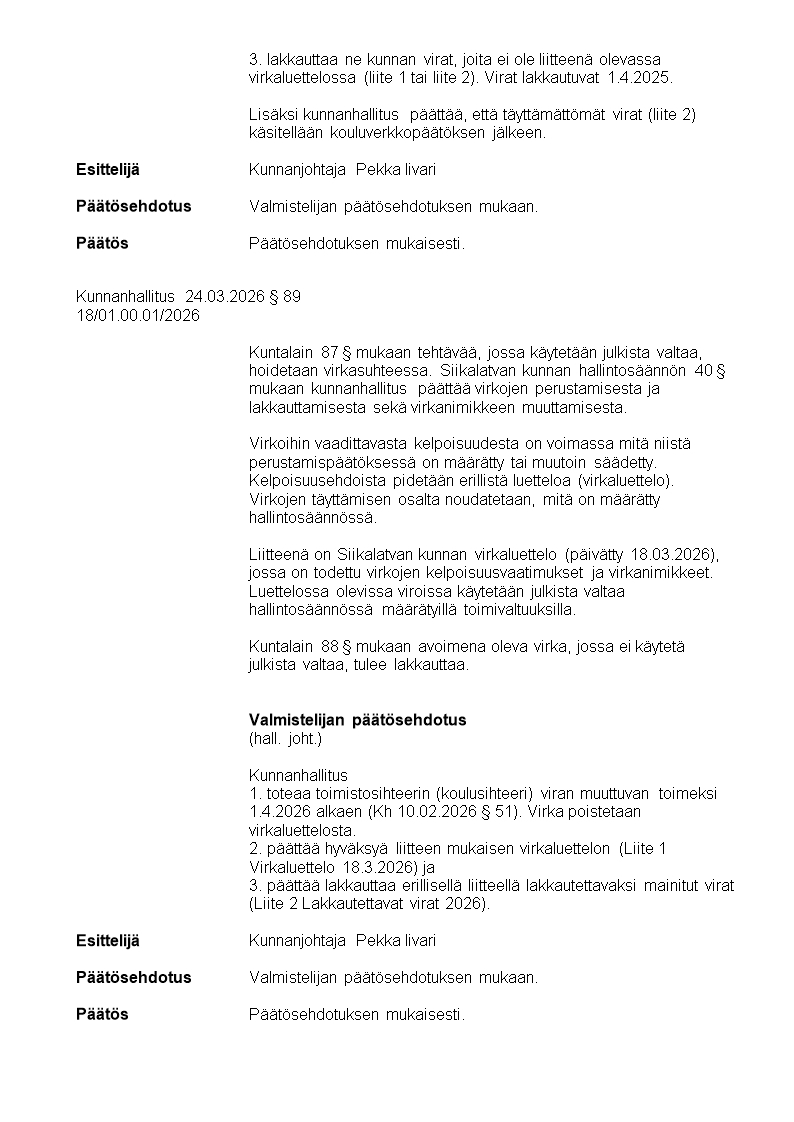 Pöytäkirja 24.03.2026/Pykälä 89