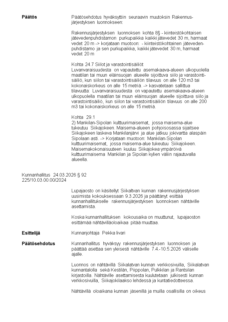 Pöytäkirja 24.03.2026/Pykälä 92