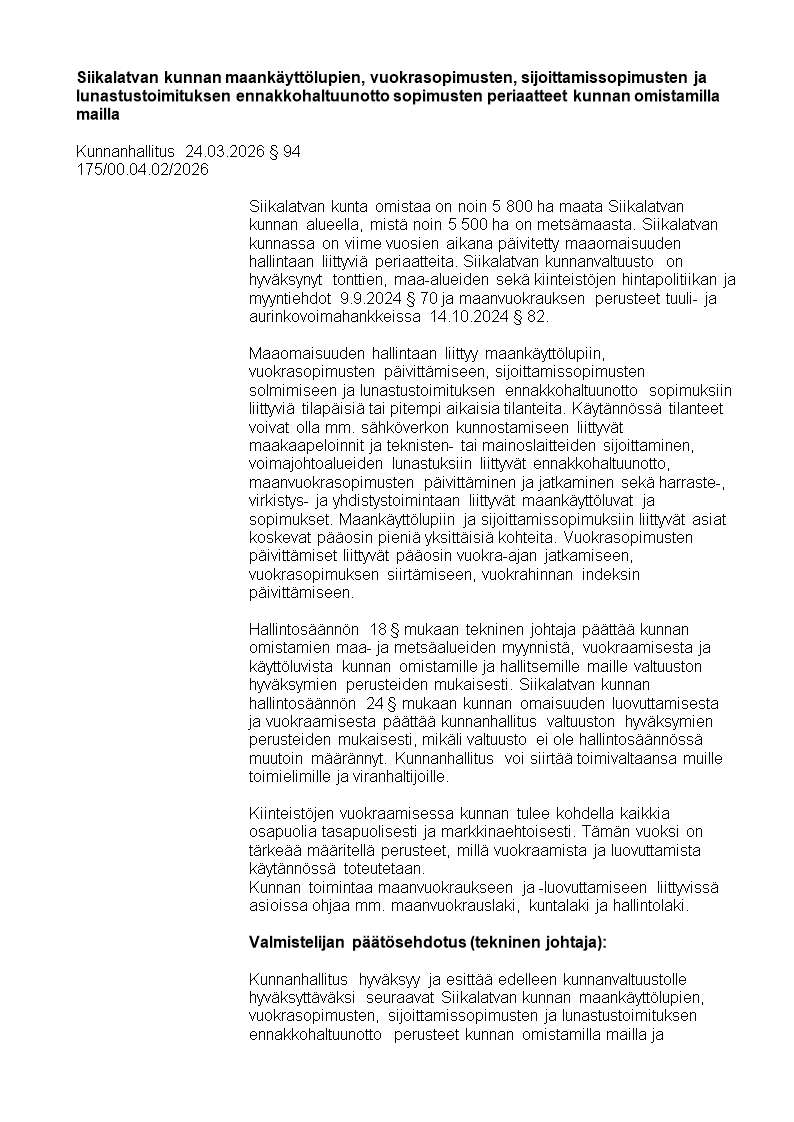 Pöytäkirja 24.03.2026/Pykälä 94