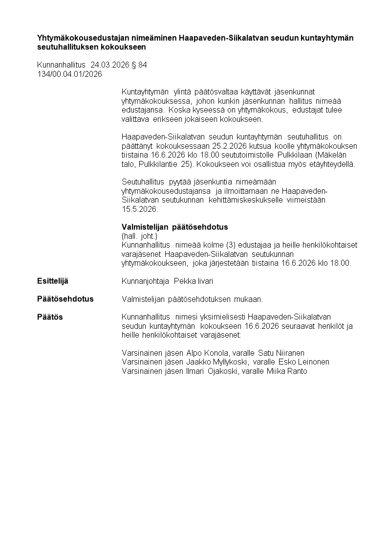 Pöytäkirja 24.03.2026/Pykälä 84