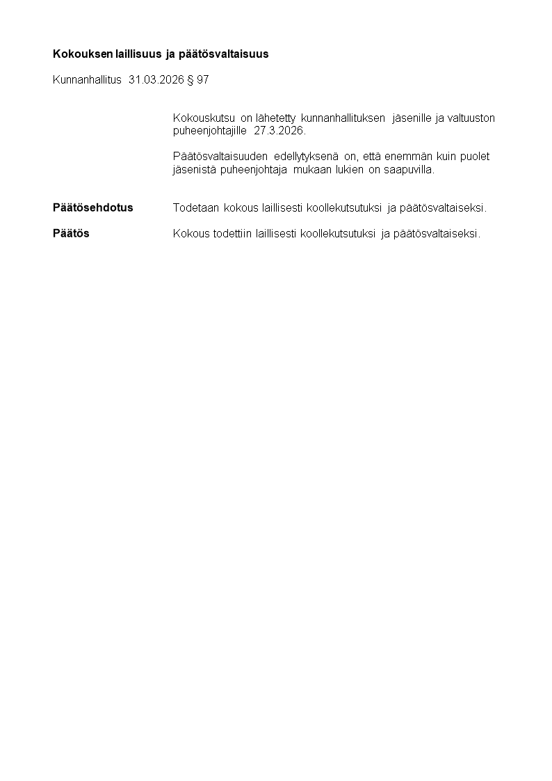 Pöytäkirja 31.03.2026/Pykälä 97
