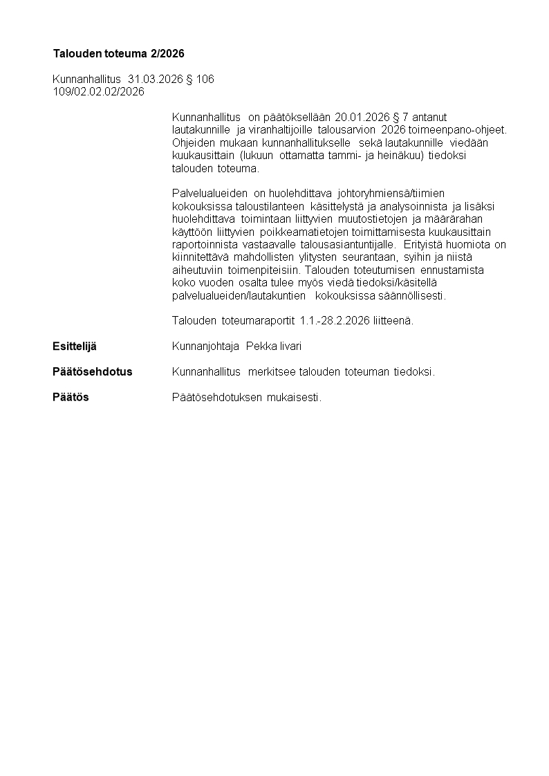 Pöytäkirja 31.03.2026/Pykälä 106