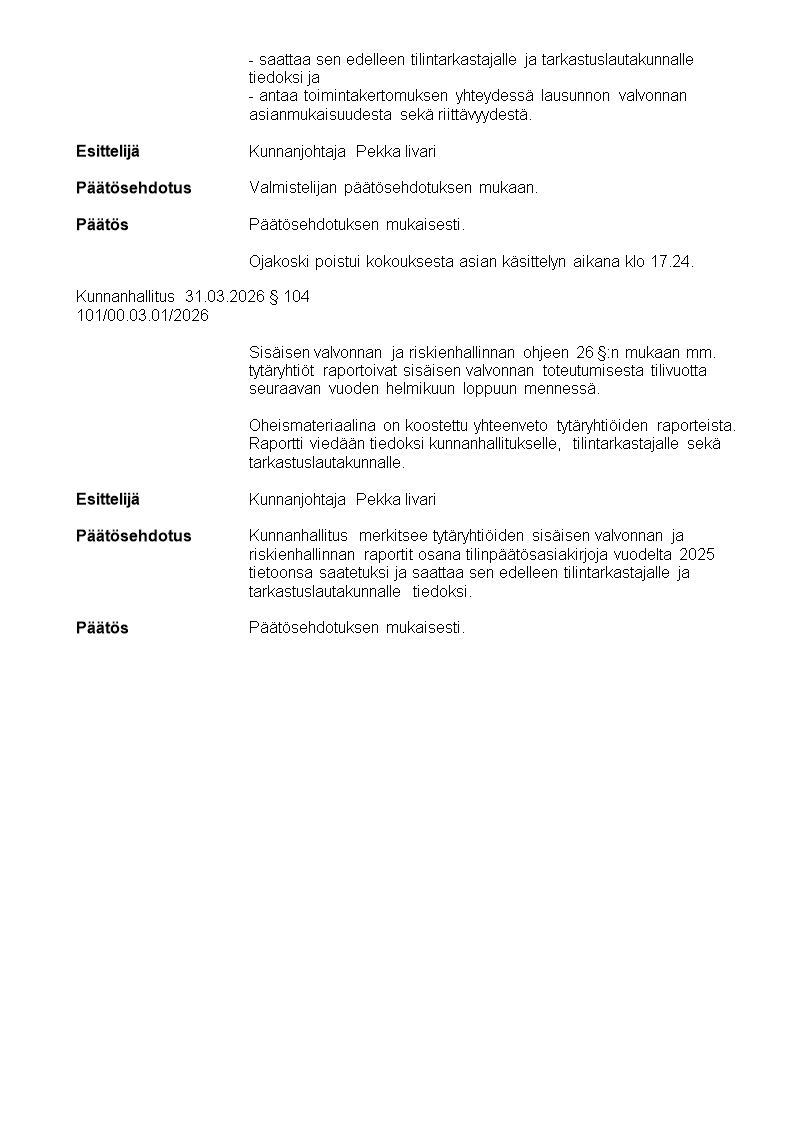 Pöytäkirja 31.03.2026/Pykälä 104
