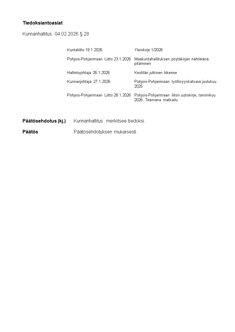 Pöytäkirja 04.02.2026/Pykälä 28