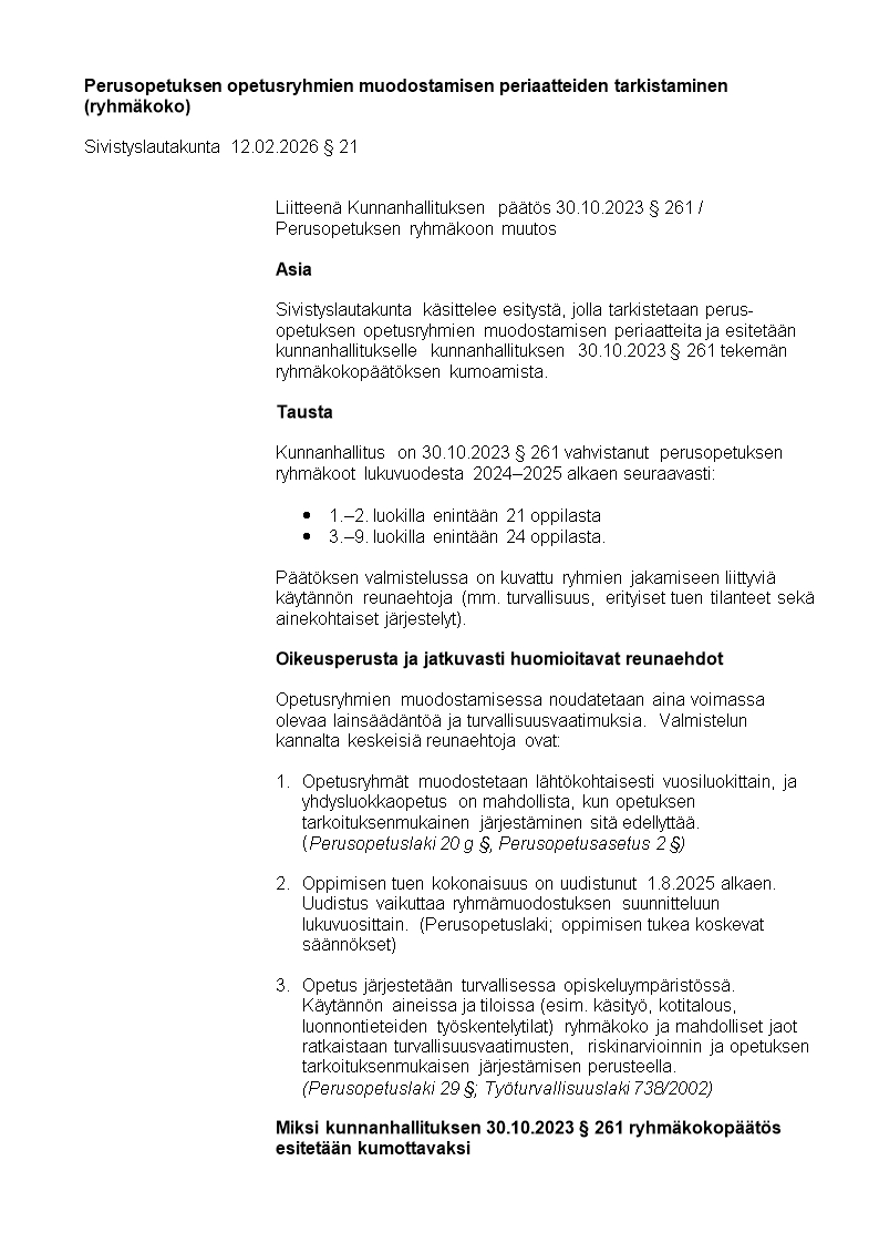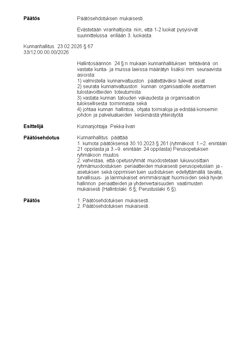 Pöytäkirja 23.02.2026/Pykälä 67