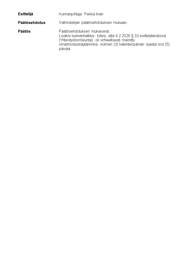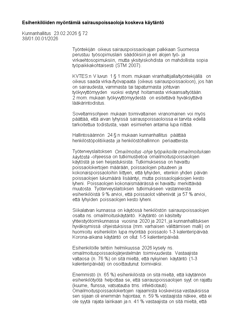 Pöytäkirja 23.02.2026/Pykälä 72