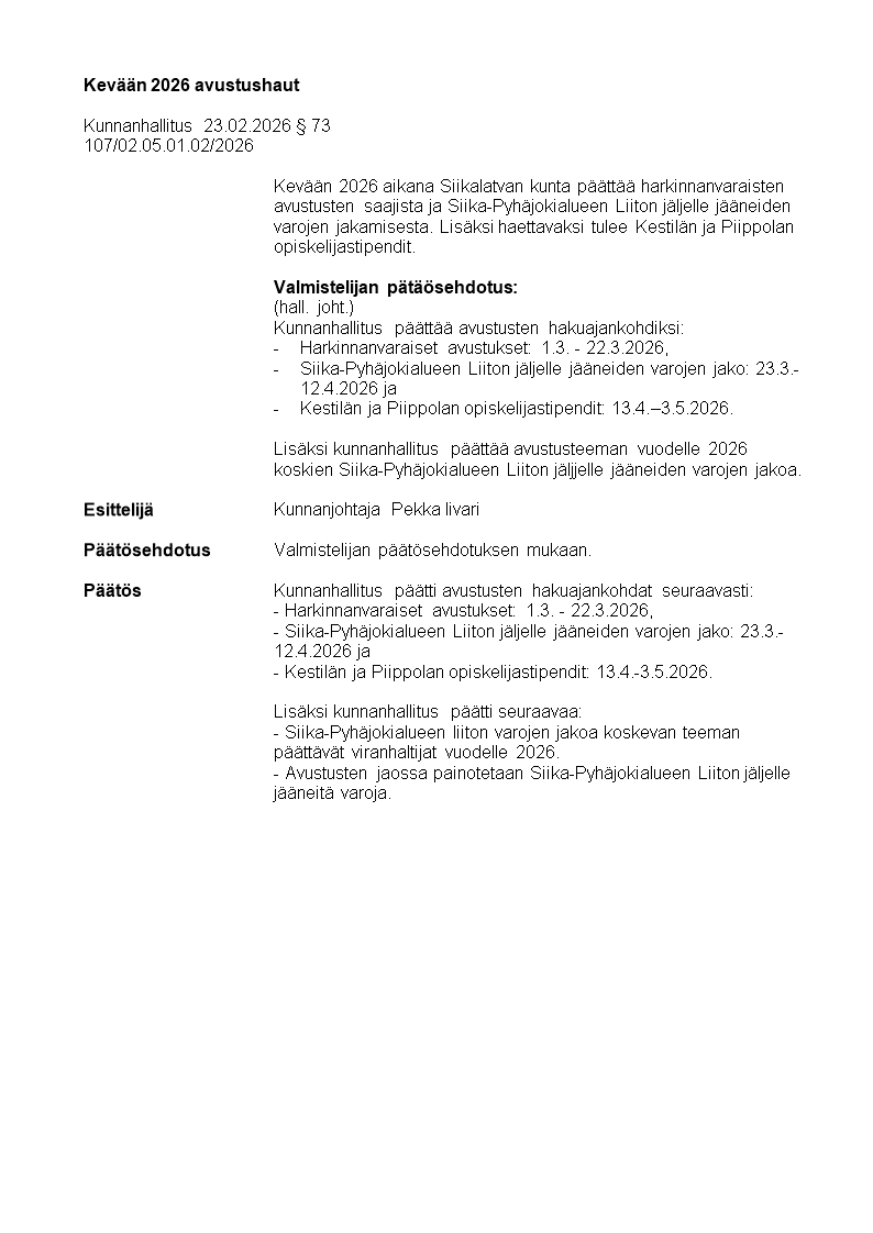 Pöytäkirja 23.02.2026/Pykälä 73