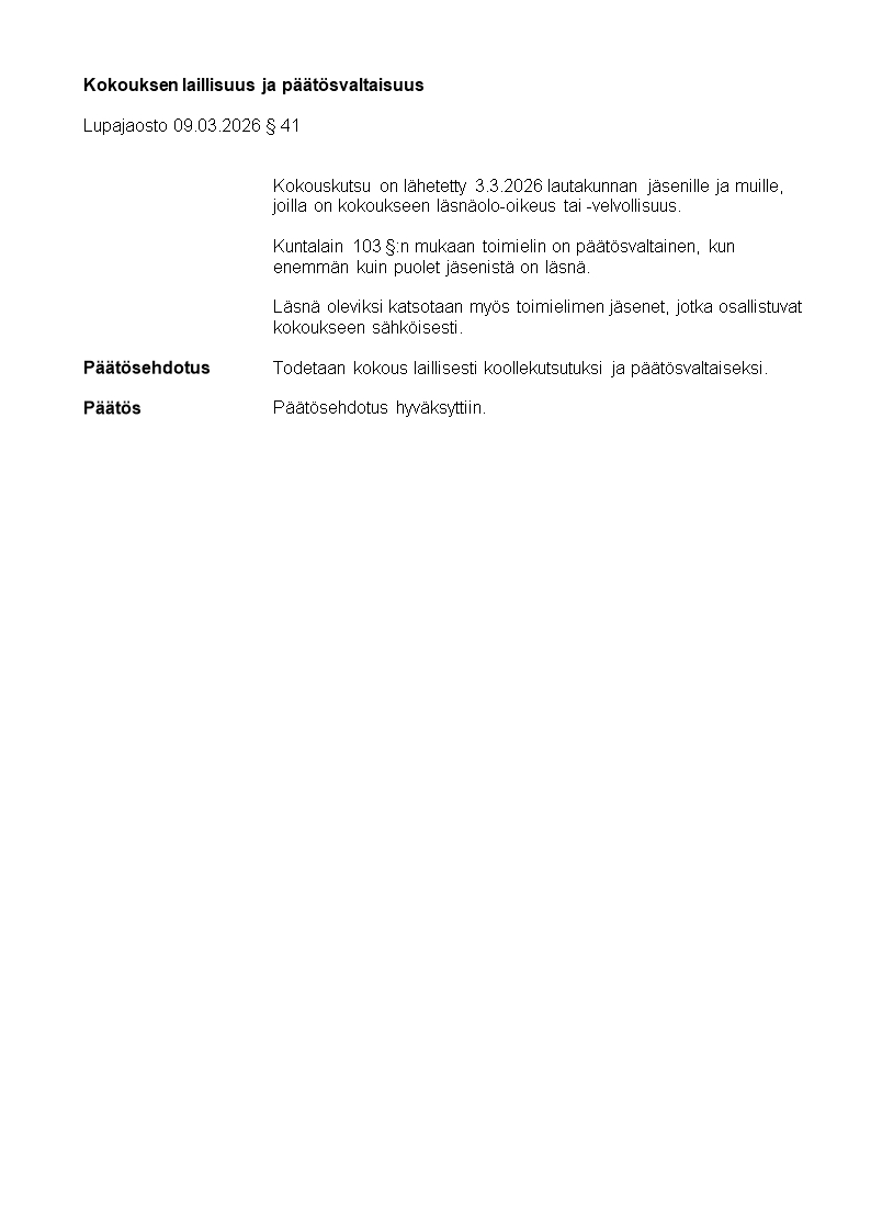 Pöytäkirja 09.03.2026/Pykälä 1