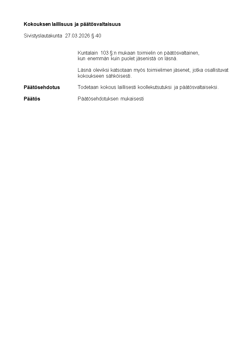 Pöytäkirja 27.03.2026/Pykälä 40