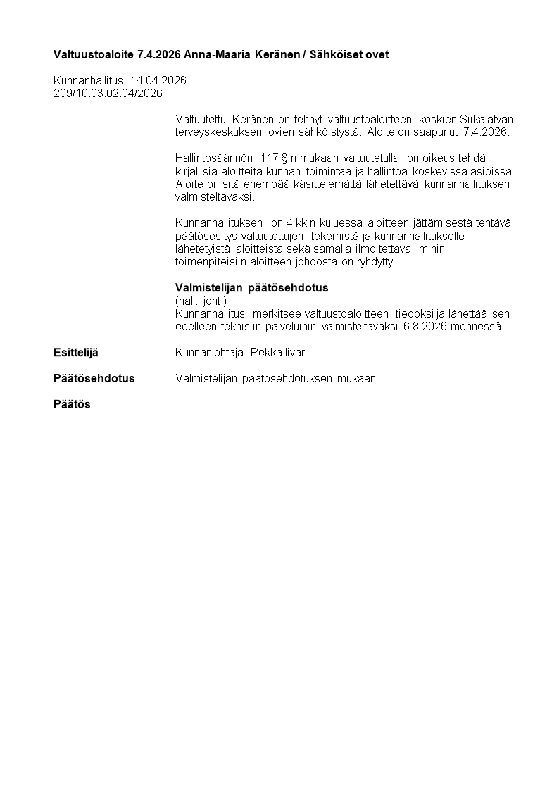 7 Valtuustoaloite Keränen