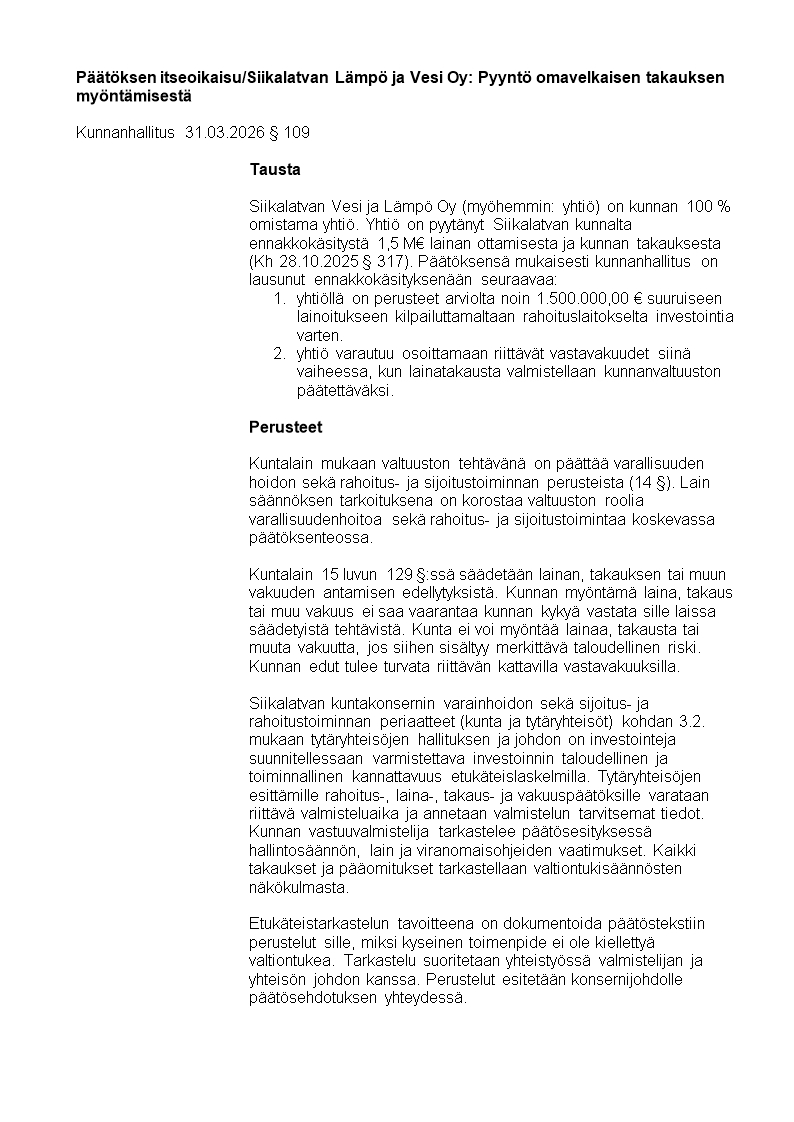 Dynasty tietopalvelu Haku RSS Siikalatvan kunta